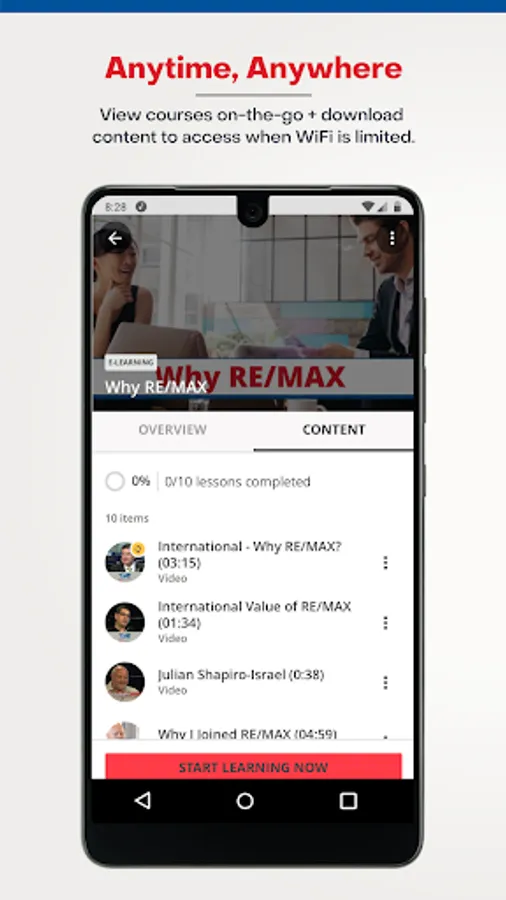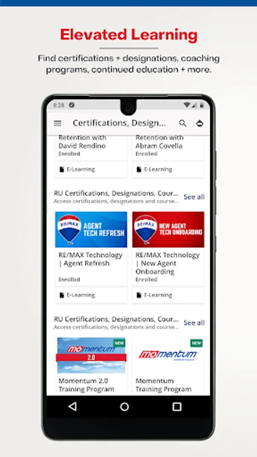 For busy agents on-the-go, the RE/MAX University app is your one-stop-shop for training and educational resources to help take your business to the next level. Access certifications and designation programs, learn from top-rated industry coaches, and watch step-by-step training videos to help you get the most out of your RE/MAX technology suite. Available to all RE/MAX affiliates, access this powerful learning platform anytime, anywhere.