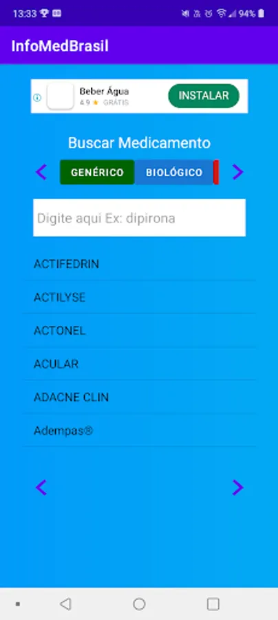 Explore the world of package inserts and medication information with the practicality and scope of InfoMedBrasil. Our app offers a complete experience, allowing you to search for drugs by brand or generic, bringing up essential details. From dosage to types of medication, including trade names and active ingredients, you'll find everything here. Uncover the manufacturing laboratory, understand the therapeutic classes and immerse yourself in the presentation of the medicine. With an intuitive and friendly interface, you will have access to detailed descriptions and the different pharmaceutical forms available. Add reliability to your research with accurate and up-to-date information, at your fingertips.