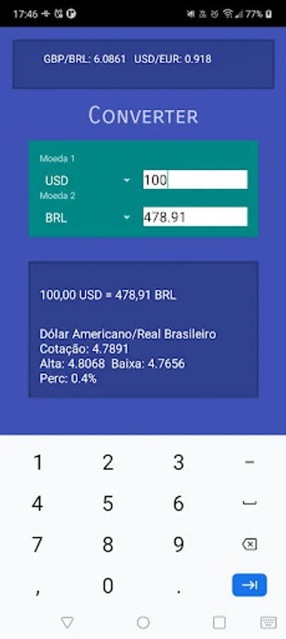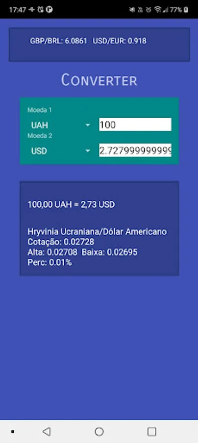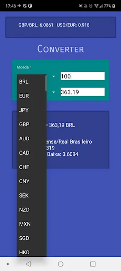 Currency Flex is your perfect companion for real-time currency conversion. With a wide range of currencies from around the world, including US Dollar (USD) to Brazilian Real (BRL) and Euro (EUR) to Brazilian Real (BRL), this intuitive and efficient application allows you to instantly convert any amount between different currencies of the world. planet.