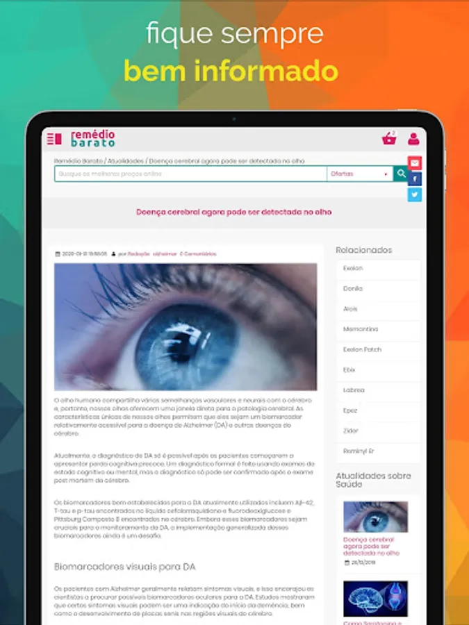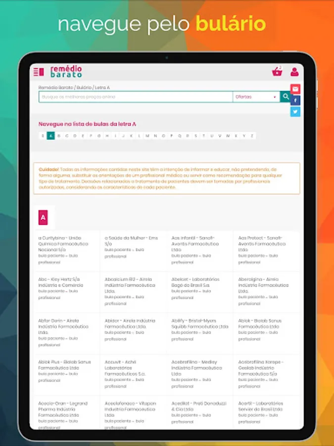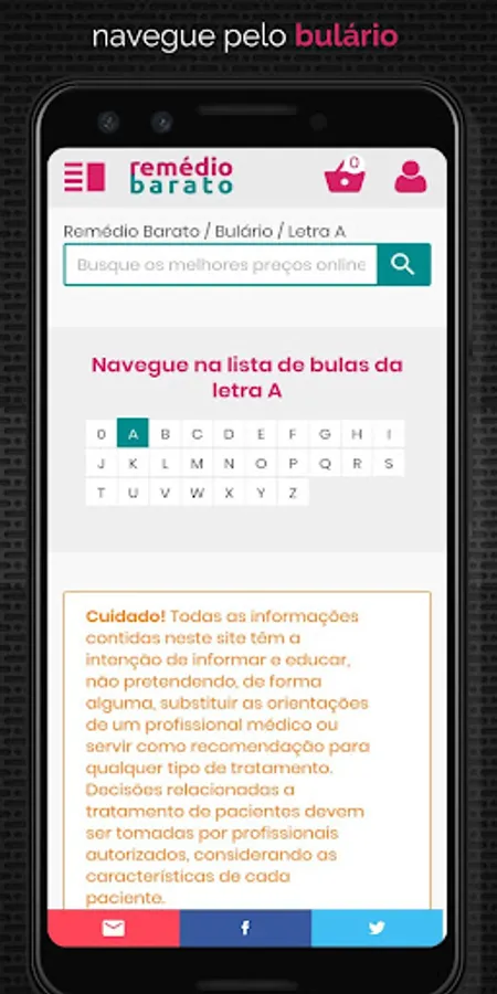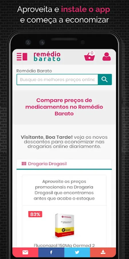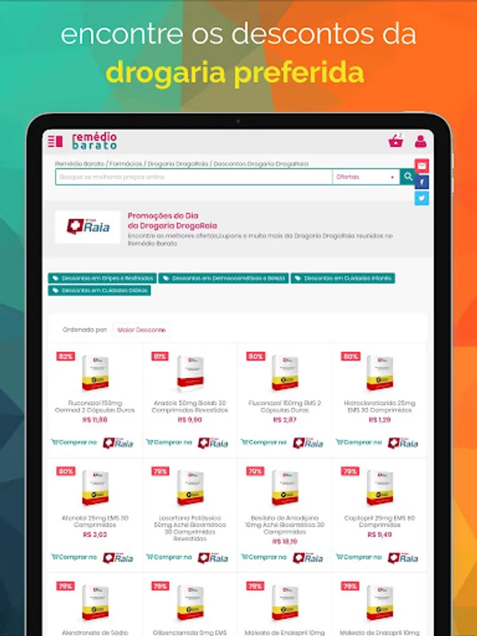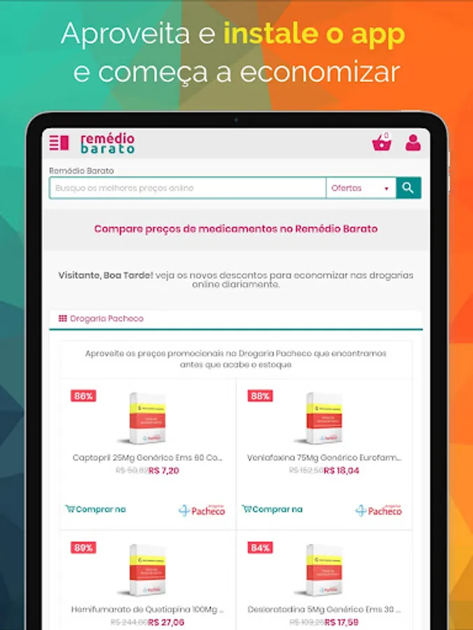 1. The advantage of this application for those who use mobile is to access faster, safer and using fewer resources on your tablet or smartphone, download now and enjoy everything that RemedioBarato can offer as a complete list of medicines, bulbar, drugs, exclusive promotions and discount coupons from online pharmacies and more.