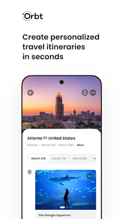 Discover a new era of travel with Orbt. Experience the convenience of AI-driven travel planning, where each itinerary is tailored to your unique desires. Let our smart technology handle the logistics, leaving you free to enjoy the excitement of exploring new destinations, immersing yourself in different cultures, and making unforgettable memories.