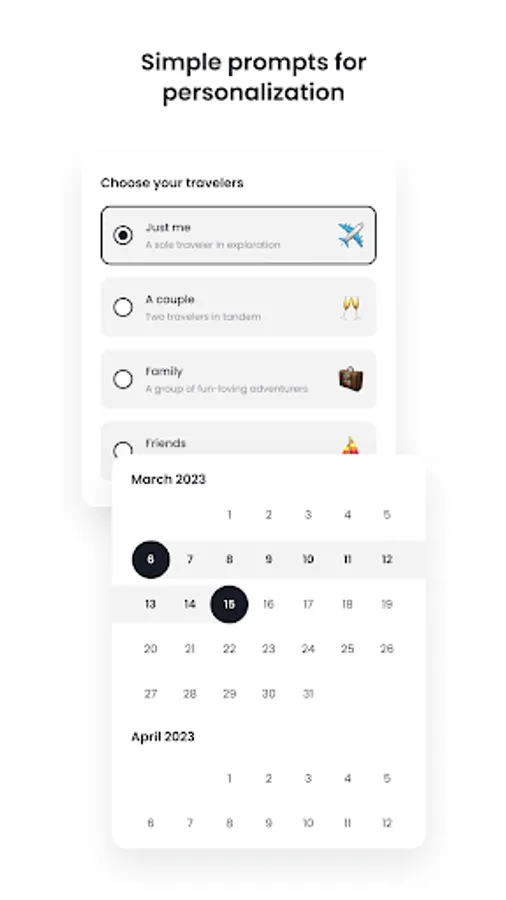 Planning a trip has never been easier. With Orbt's intelligent travel planner, create custom and personalized itineraries tailored to your preferences and travel style. Our AI technology analyzes your interests, budget, dates, and desired destinations to craft the perfect trip for you. Say goodbye to generic itineraries and hello to personalized adventures.