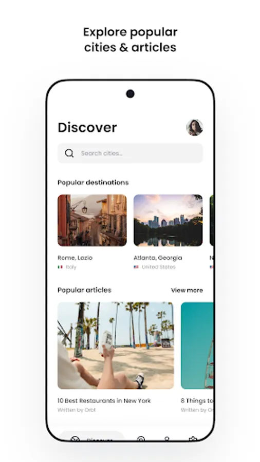 Let Orbt be your trusted travel companion, guiding you through every step of your vacation. Discover new destinations and hidden gems as our smart algorithm suggests unique travel experiences based on your interests. Explore captivating landmarks, indulge in local cuisine, and immerse yourself in diverse cultures, all curated just for you.