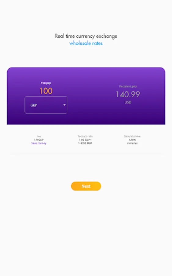 Our service charge starts from as little as £0.99 per international transfer regardless of the amount sent and is clearly displayed upfront.