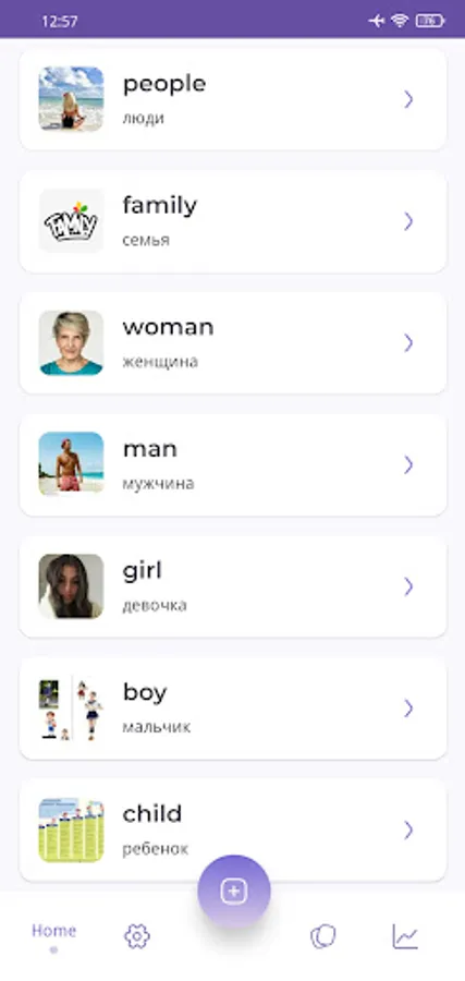 Simple dictionary - learning foreign words. Supports English, French, Russian, Spanish and German languages. You can add a widget to your desktop and the words will automatically change on it, so remembering the words will become even easier. Now you can learn words with special study cards. Also in the application there are ready-made collections of words for the basic level.