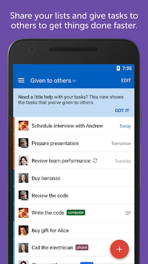 • Badges and widgets - see your tasks at a glance and always know how many are due