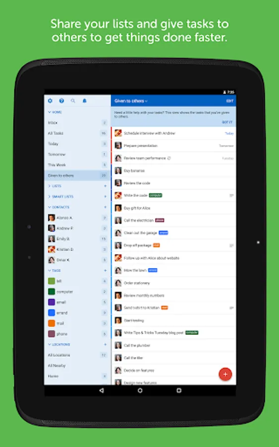 • Organize the way you want to with priorities, due dates, repeats, lists, tags, and more
