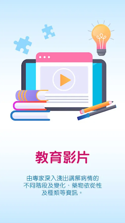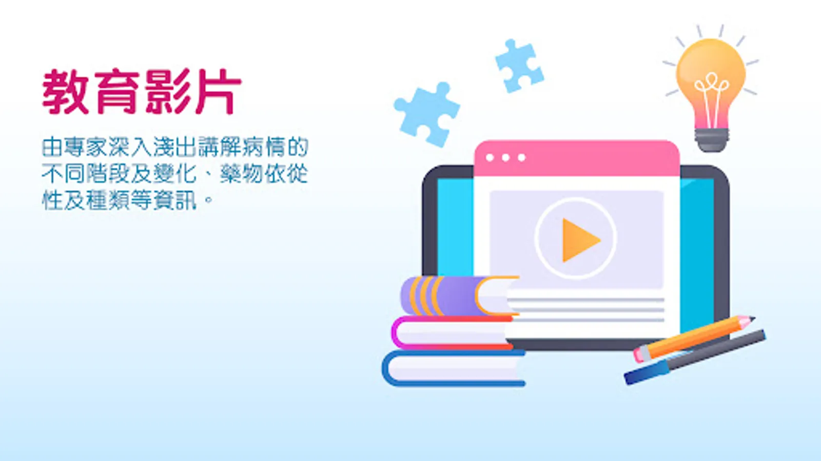 教育影片:由醫生以影片形式分享認知障礙症的不同階段、病情變化及藥物依從性及藥物劑型等知識。