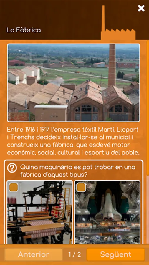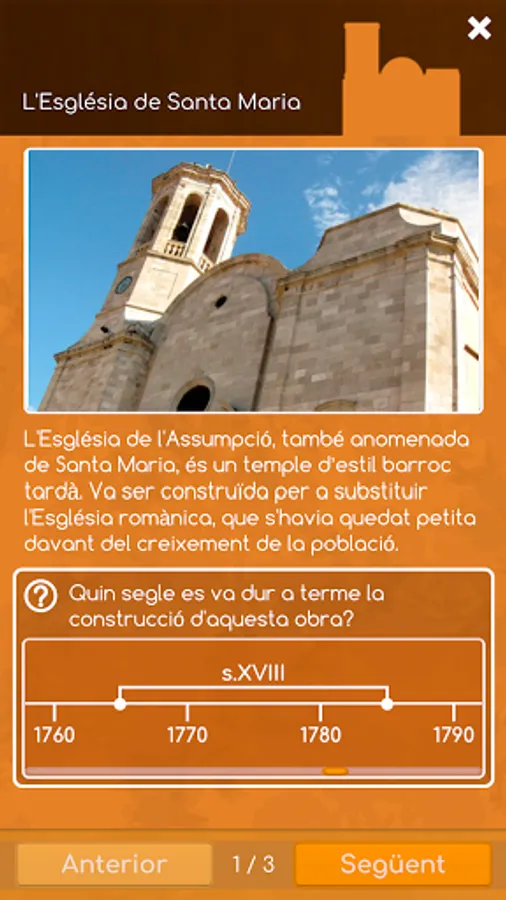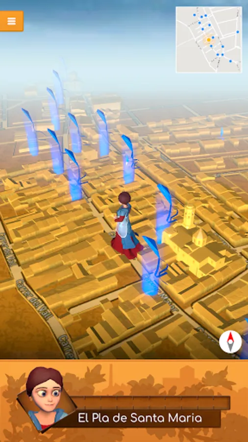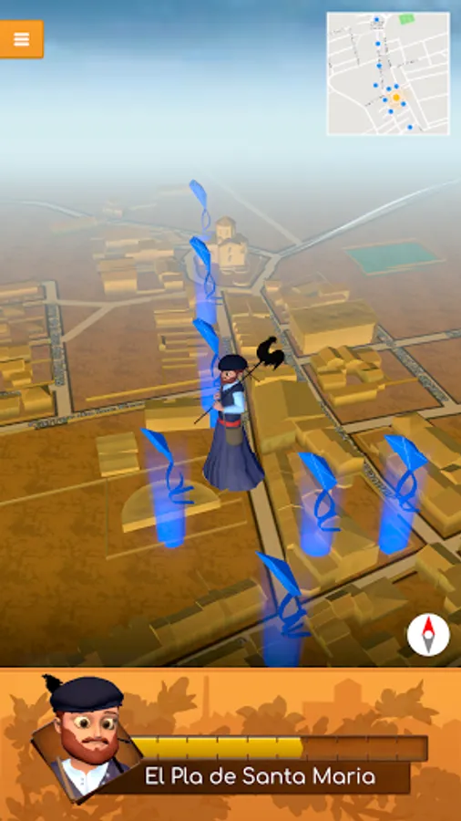 Using the map with geolocation, you can physically move around the village at the same time as your character, a giant who will guide you to the emblematic places of the municipality. You will get to know them in depth with different types of games and tests.