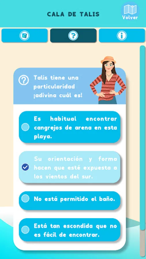 Show your knowledge of this paradisiacal beach and its surroundings by answering curious questions, and discover the paleochristian basilica and the fauna of the place in Augmented Reality.