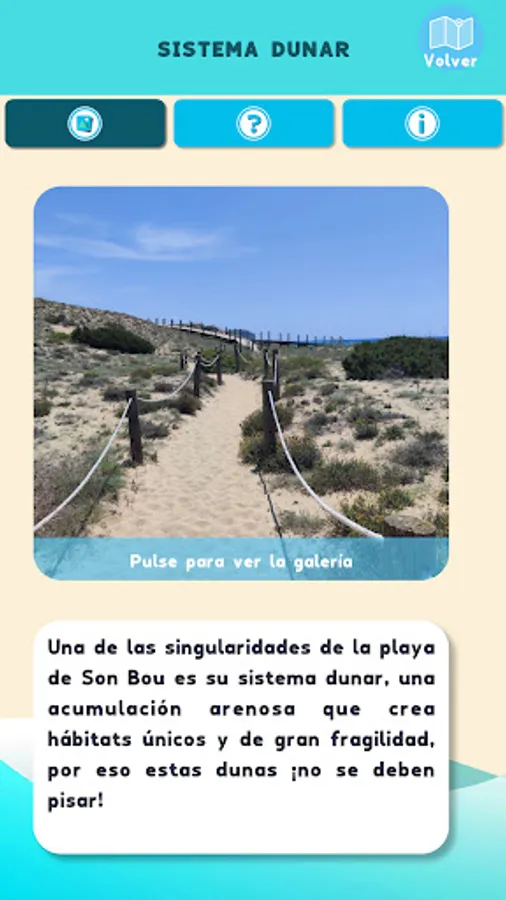 Our application will guide you through a beautiful journey through the dune system in which you will discover why Son Bou is a unique place in the world...