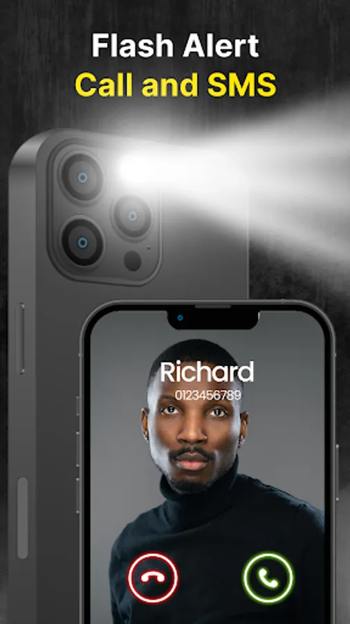 "FlashLight App - Flash Alert" app helps you identify the incoming call, message, notification of other apps and avoid missing the notification. You can choose apps, set flash alerts and their speed according to your preference. The flash will blink when mobile phone receives a Call, Message or Notification of all apps.