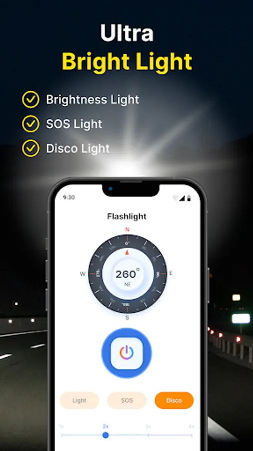 - Disco mode: Can have flashlight frequency changed, ranging from really fast blinking to occasional ones