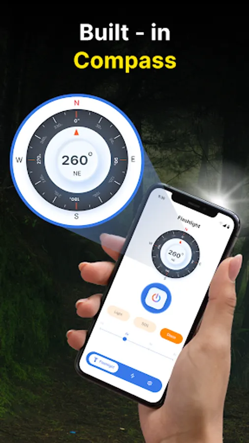 "FlashLight App - Flash Alert" app that goes with a compass, giving you direction in the darkness. Don't miss it!
