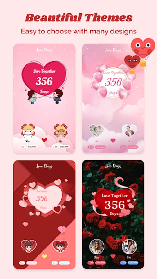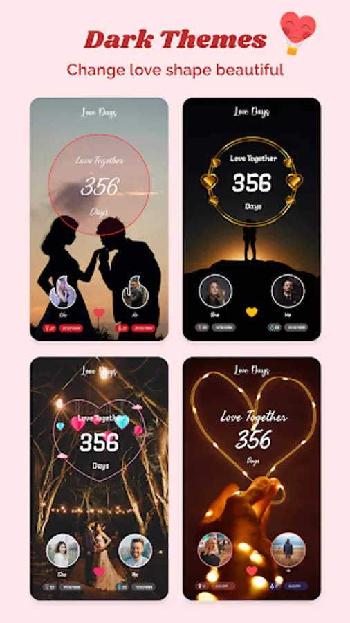With “Love days - Couple widget”, you'll never forget the best moments, romantic moments and the special memories you've spent by their side.