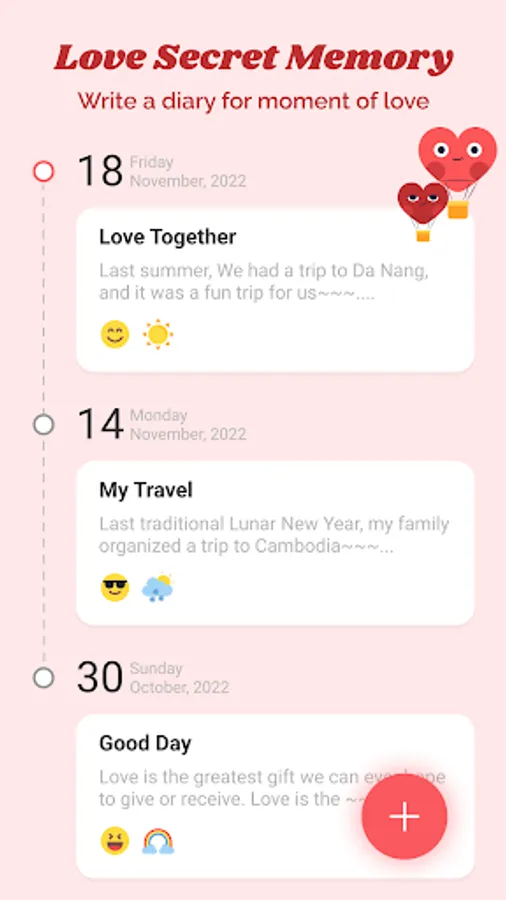 🤗 Love diary: User can record his/her daily noteworthy incident by using love diary function. Love Secret Memory - love diary is a diary feature daily love, stay happy and sad moments in life; moments deposition in the heart of every person