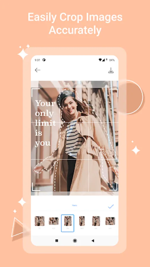 - Pinch to resize the photo, Rotate, flip, crop photo with multiple ratio: 1:1, 2:3, 4:3...