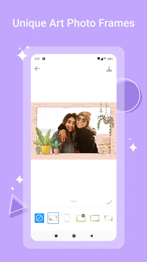 - Sets your photo in another photo frame with some creative pip frames