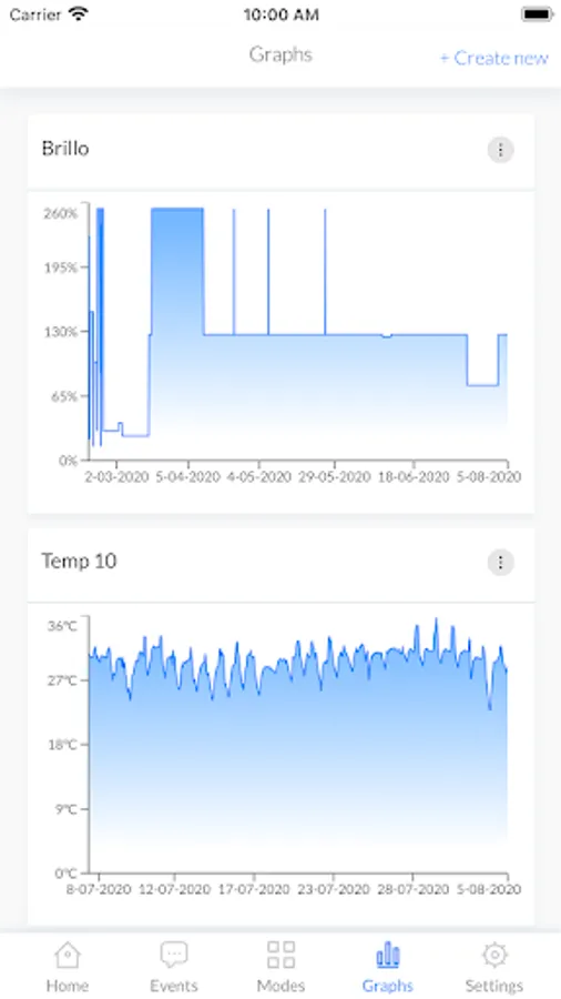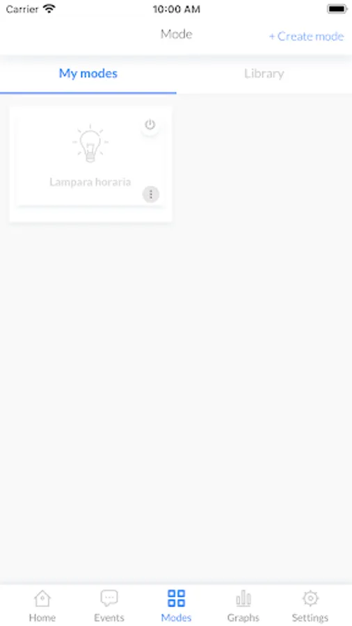 - Create automation (Modes) to control multiple devices. For example: Create a mode so that at a certain time the lights turn off and the blinds go up, or if a presence detector or window contact is activated, an event is generated which generates a notification.