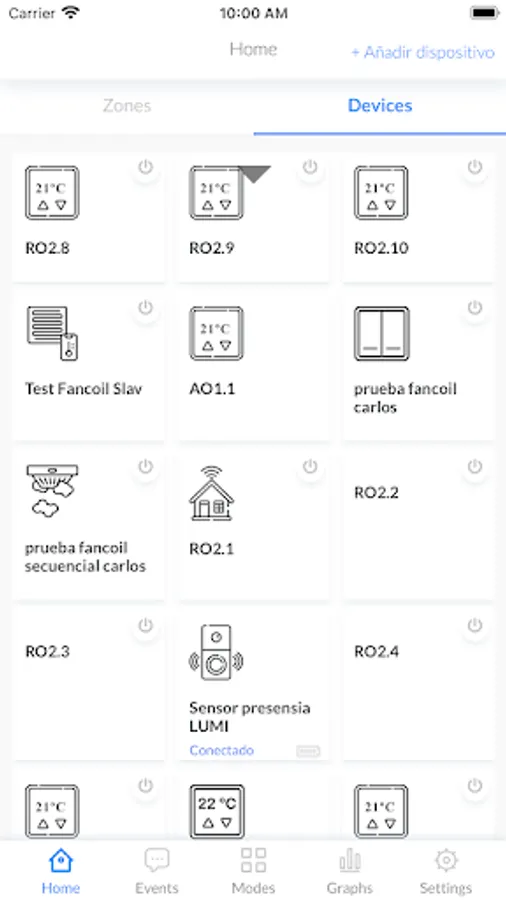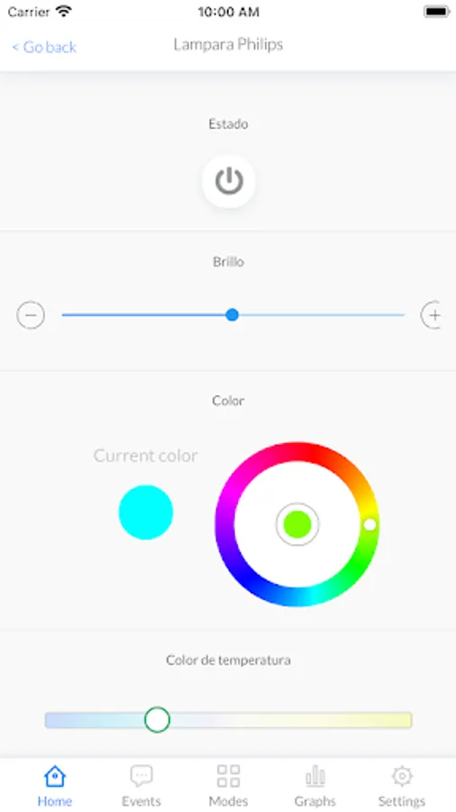 - View the status of the properties of each device (Temperature, Humidity, etc.) and act on the properties that allow it (On / Off, brightness control, color, etc.)
