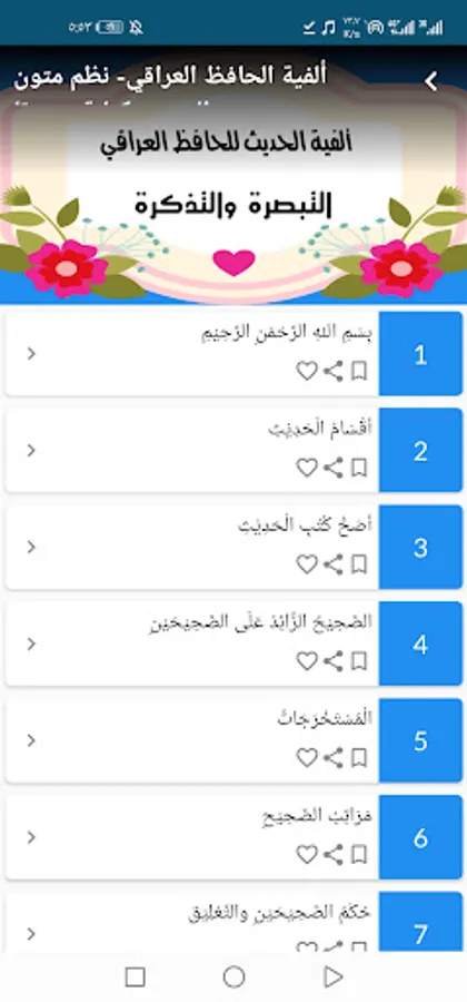 This book contains the keys to the science of hadith, including a summary of its sciences of different materials, from dates to texts, then controlling them, then knowledge of men, then their wounding and modification, then to the colors of science, in which the reader turns among the gardens of its flowers, picking its flowers and reaps its fruits by perpetuating the consideration of this science He traced its ramifications, sniping its benefits, noticing the positions of the people concerned about it, the name of Alfiya al-Iraqi: (Al-Tasbirah and the Ticket), and its explanation afterwards, and the name of the explanation: (Sharh al-Tasbirah wa al-Tizkirah). God is the guide and conciliator to the truth, with his permission.
