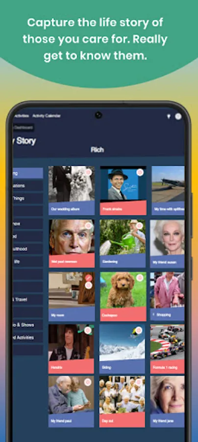 ReMe makes it possible to capture a life digitally. Through easy uploading and bespoke activities, a ReMe My Story grows to become an invaluable resource of personal knowledge, that’s available to anyone in the care circle.