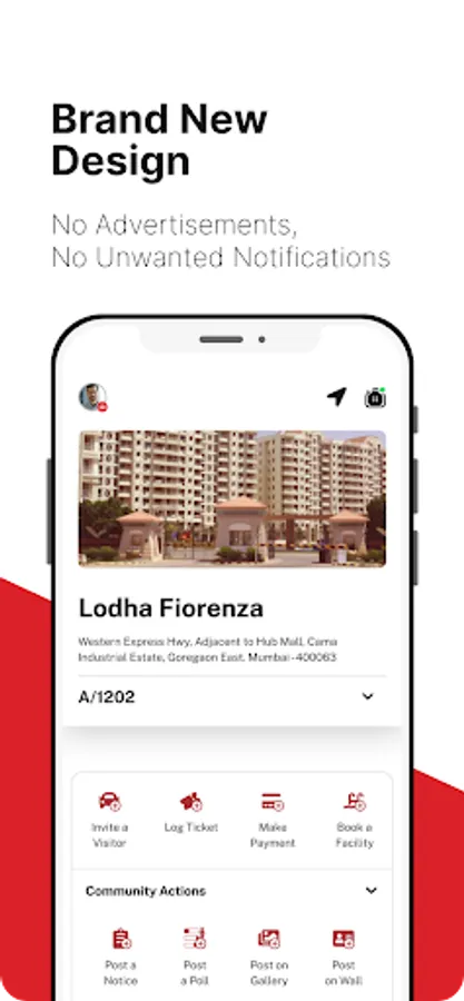 - Get all the society-related important notices & communication via email, SMS & app notifications.