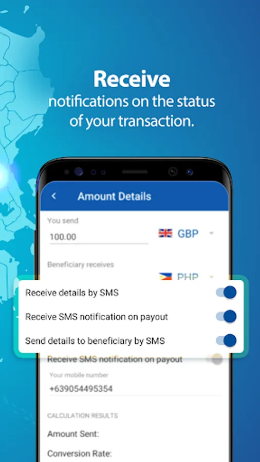 If you provide your beneficiary's mobile number, he or she receives an SMS notification when your remittance is credited to their account.