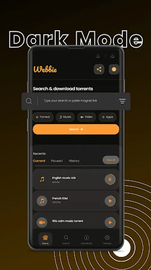 Webbie is a powerful and easy-to-use TORRENT DOWNLOADER and MANAGER for Android. With Webbie, you can search and download torrents quickly and easily from multiple torrent websites, or use your own magnet links.