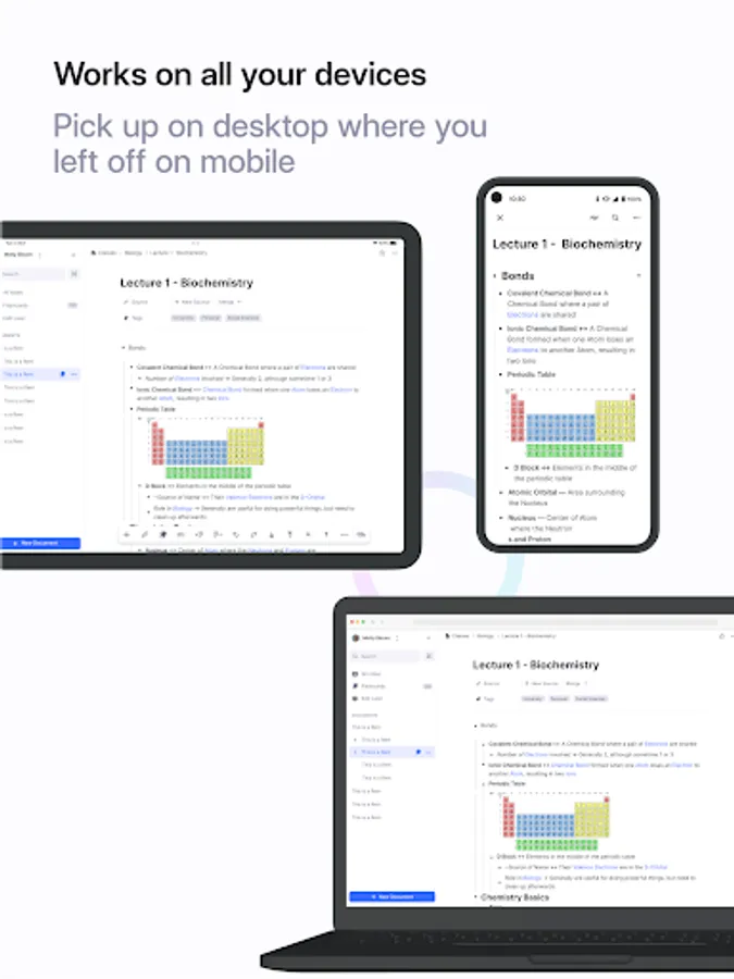PDF Annotation: Work with external documents directly in the app, make your notes and create flashcards using the source materials. Highlight, create margin notes, and link sections of your document to the rest of your digital library.
