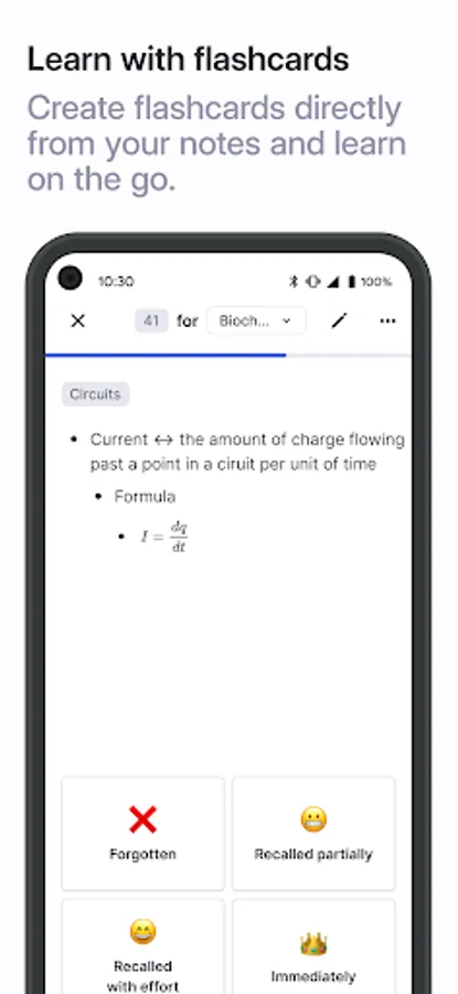 Easy Formula Handling: The Latex feature allows you to create inline formulas with a simple annotation editor. Easily create and edit formulas on the fly as you take notes, and enjoy a clear and attractive display of these formulas as you review your notes and flashcards.