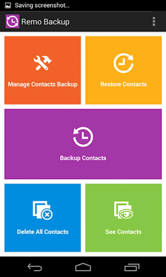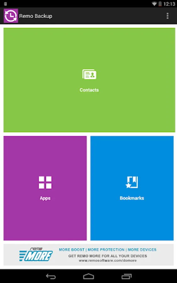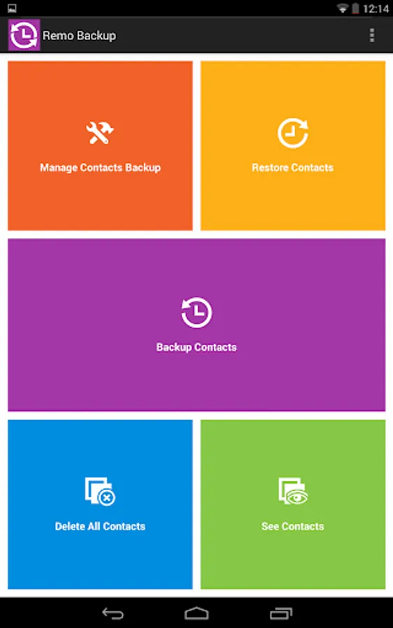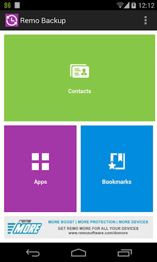 Remo Contacts Backup is the best free app available in store to backup and restore all your contacts, apps and bookmarks on your Android smart phone. With Remo Backup, you need not to worry about the safety of your important information at all. Just take regular backup of all your contacts, apps and bookmarks using this app.