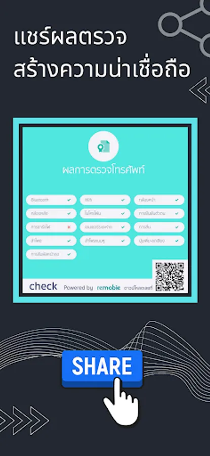 The Check app will help you check with our standard system. Let you know the real condition of the phone. Along with connecting to the remobie order system (ROS), you can trade on the phone instantly at more than 2,000 participating stores nationwide.