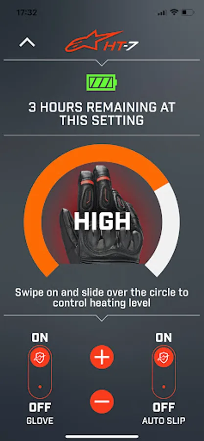 Easily select your Alpinestars’ HT Heat Tech garment and connect your device to control heating level and monitor remaining battery life and status. Via the app you can set the temperature of each Alpinestars’ garment for perfectly customized warmth, even in the coldest of conditions and activate the garment’s smart functions.