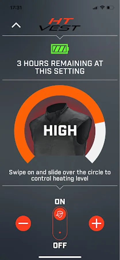 • Set and control the internal temperature of Heat Tech garments via a Bluetooth® connection.