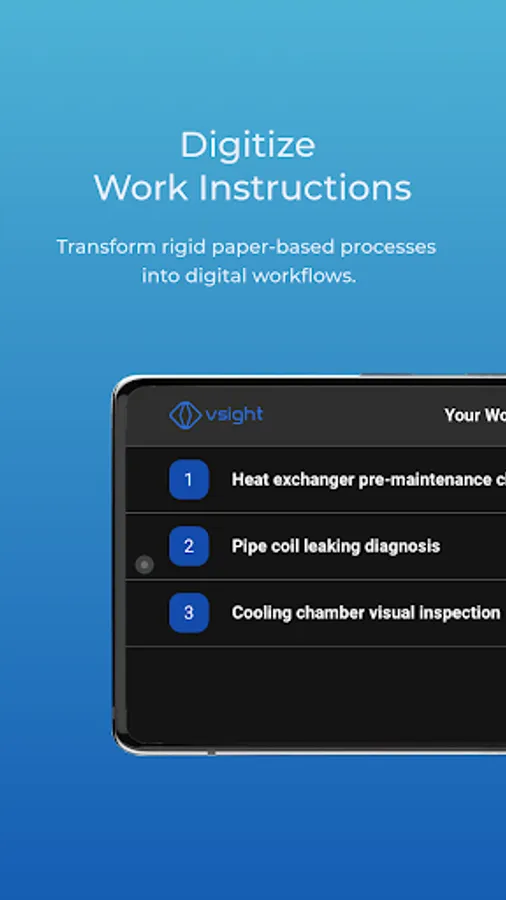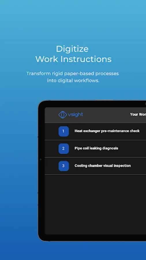 VSight Workflow enables you to transform rigid paper-based processes into digital workflows. It empowers your frontline workforce with self-guided, interactive, and contextual instructions during service, quality assurance, and other repetitive operational processes. You can easily create, deploy and execute dynamic workflows; capture work data and start building a digital knowledge network for training, reporting, and inspecting.