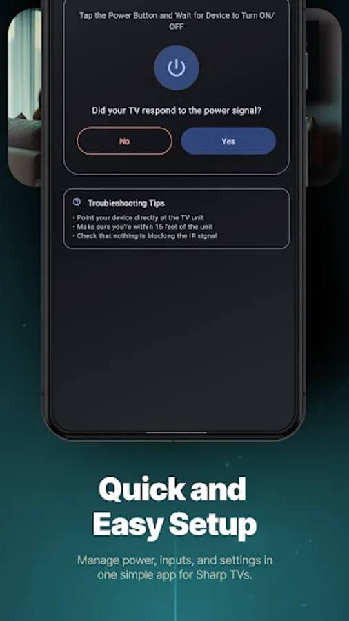 Ideal replacement when your physical remote is misplaced, damaged, or out of battery. Connect your Android device to the same WiFi network as your Sharp TV for immediate control capability.