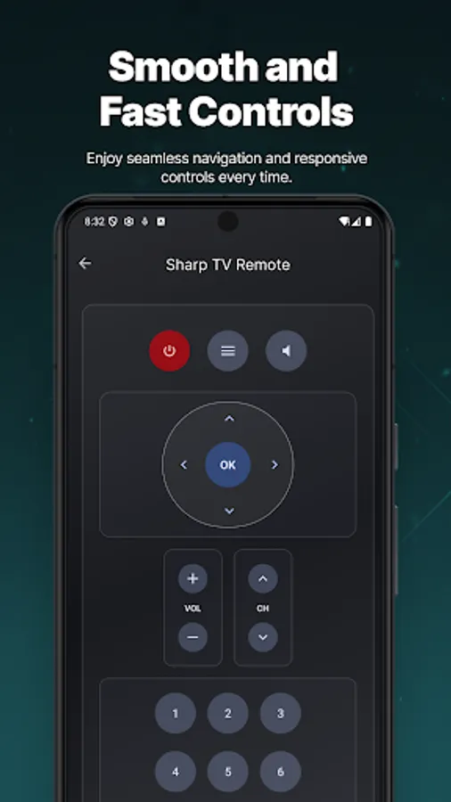 Special support for Sharp Aquos smart TVs with quick access to internet services, TV settings, and popular streaming platforms. Experience the convenience of always having your TV remote available on your phone.