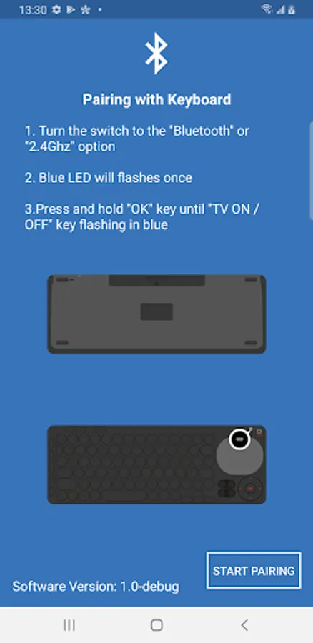 AIOKB app is able to set up a legacy-IR device such as a TV on the AIO Keyboard through the Bluetooth connection.