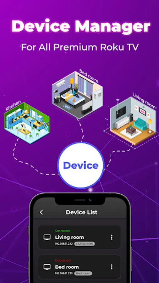 οΈβ Support to control multiple Roku devices at the home: TV devices in the living room, bedroom, office, kitchen with smart