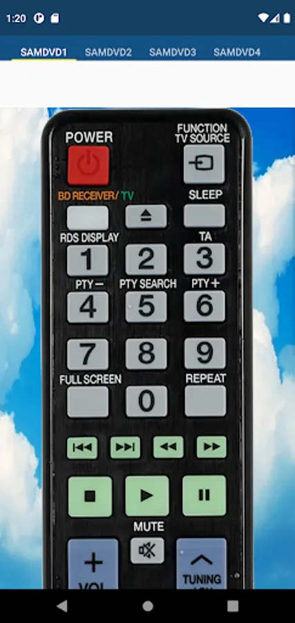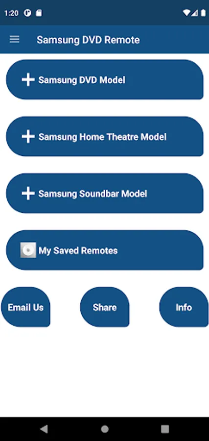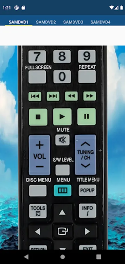 Here This Samsung DVD RemoteApp Provides You 6+ Different Types of Remote and you can Select Anyone from out of 6.