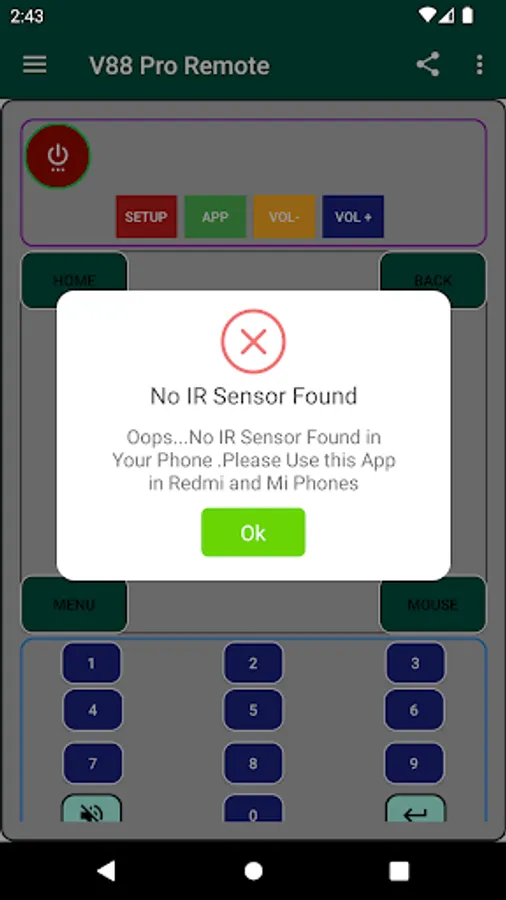 Remote for V88 Pro Tv Box is the smart app to control all the functionality of your Android Tv box devices .This app provides all the functionalities that your physical remote provides and other advanced functions as well. This App will help you alot if your physical remote is damage or lost. This Apps works on V88 Pro android tv boxes without programming . This App is fully depend upon IR Blaster to respond with tv box so Your smart phone must contain IR sensor, else this App will not works .