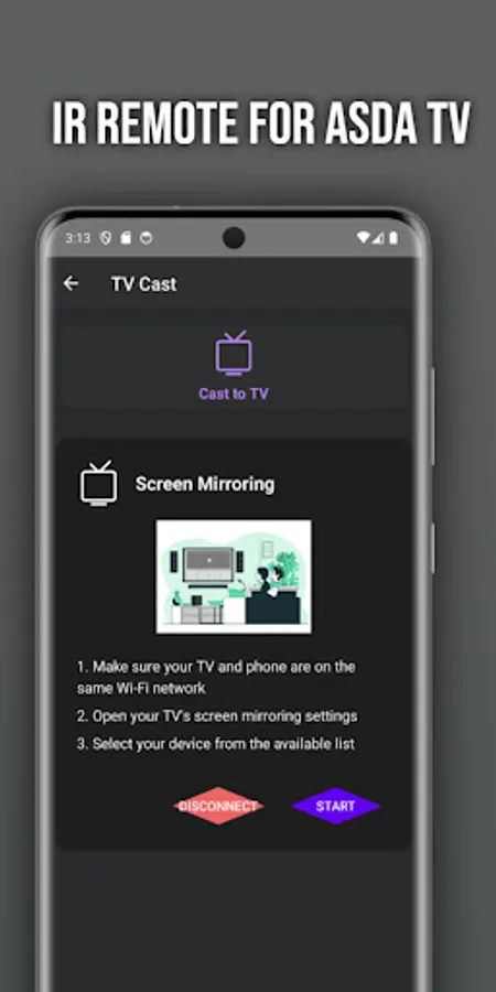 Quickly connects to your Asda TV over your local Wi-Fi network.