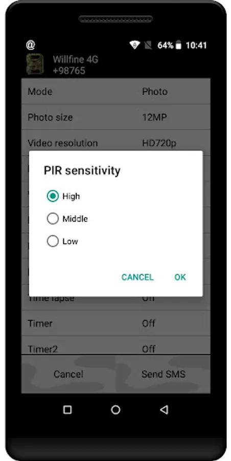 - easy access to User Friendly SMS control for the camera. The app has predefined set of