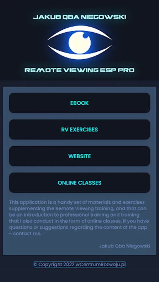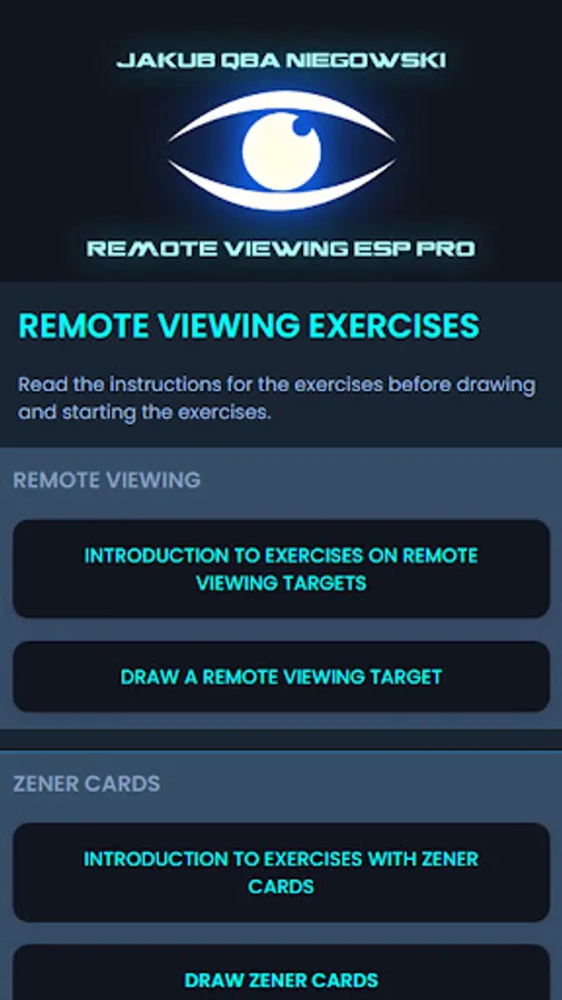 App with information on the development of extrasensory perception (ESP) using the Remote Viewing method and exercises.