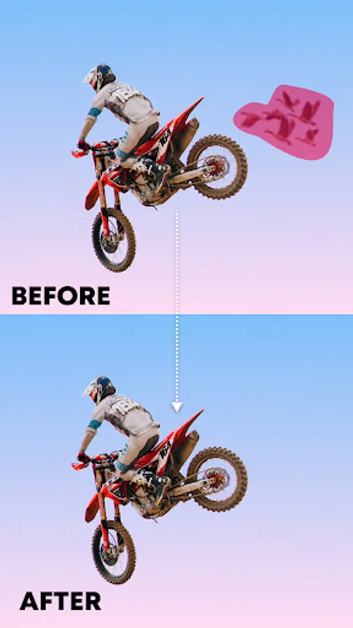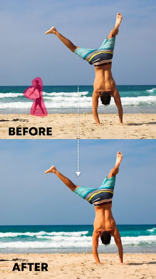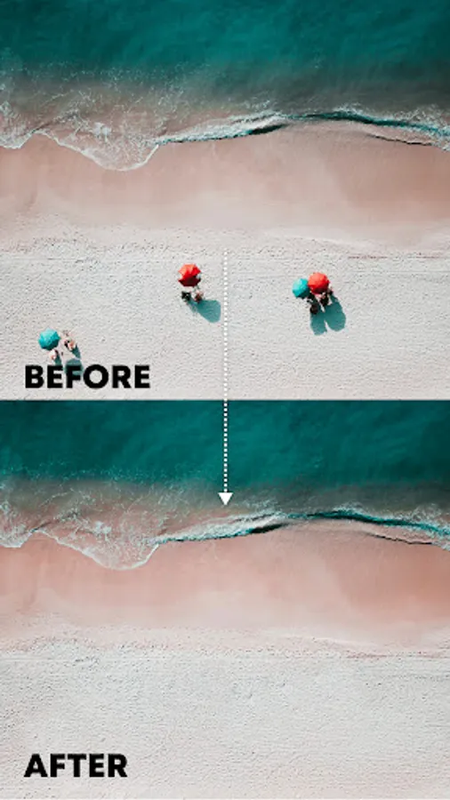 Remove objects from your photos with one touch without a computer? It's easy! Together with our object remover app, you can easily erase unwanted object from your photo and save new image!
