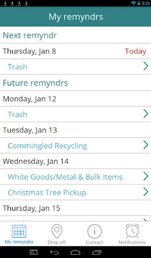 Simply download remyndr and enter your home address. If your town has signed up to offer remyndrs, you will instantly see the calendar of pickups at your home. Nothing more you need to do except sit back, relax and wait for your remyndrs.