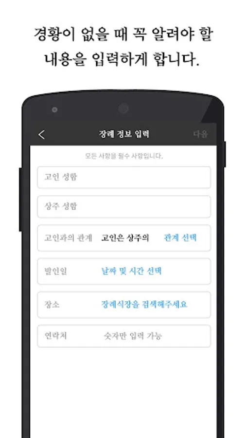 - 간단한 정보 입력으로 누구나 쉽게 부고장을 보낼 수 있습니다.