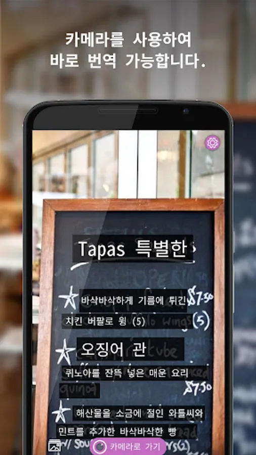 - Instant Camera Translation: Instantly translate language using camera