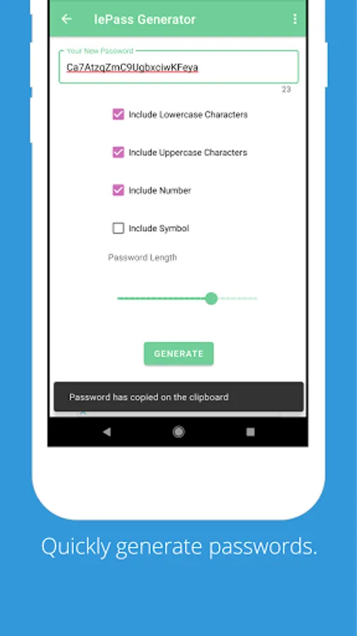 lePass is a simple tool to quickly generate passwords. You can create a password with a combination of uppercase, lowercase, symbols, and numbers. The advantage of this application is that it saves automatically generated passwords to the clipboard, so you can easily create passwords and paste them on websites or applications that require more protection. The encryption solution creates complex password combinations to protect your accounts from potential hacking.